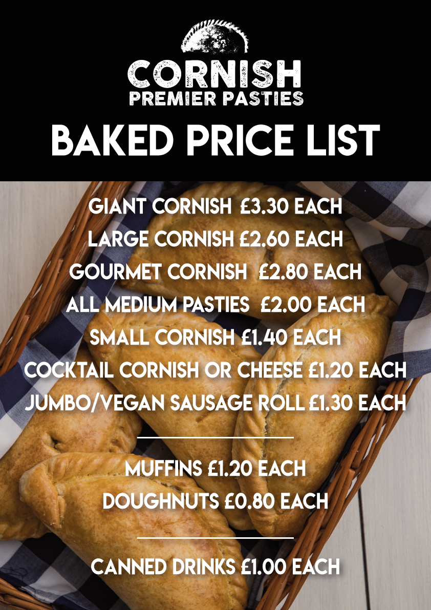 Here is an updated Baked Price List for the products available, in addition to our Frozen 4 Packs. Please remember, there is a limited range of freshly baked products available in store. To avoid disappointment, please call the office on 01637889388 to pre-order (giving 2 hours notice).
